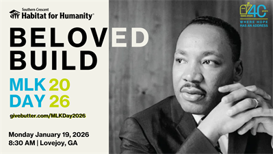 The Beloved Community is fair, just, and built on love. It fuels our belief that making homeownership accessible and affordable for all families is a critical component to creating the kind of future that Dr. King envisioned. As our nation marks the 40th anniversary of the federal observance of Dr. Martin Luther King Jr. Day, Southern Crescent Habitat for Humanity is honored to celebrate our own 40-year legacy of service with a special Beloved Community Build Day January 19, 2026.